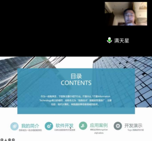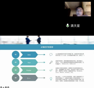 讲座上,阿拉斯老师结合工作经历和实际案例,深入分析了移动互联网(iOS/Android)的产品研发、应用案例、开发演示等主营项目,为同学们分析了该专业方向的市场需求与就业前景,对信息管理与信息系统专业毕业生的出路提供解决路径,同时就目前IT行业较为流行的Java、Vue、Flutter、C++等具体应用技术作了分析。