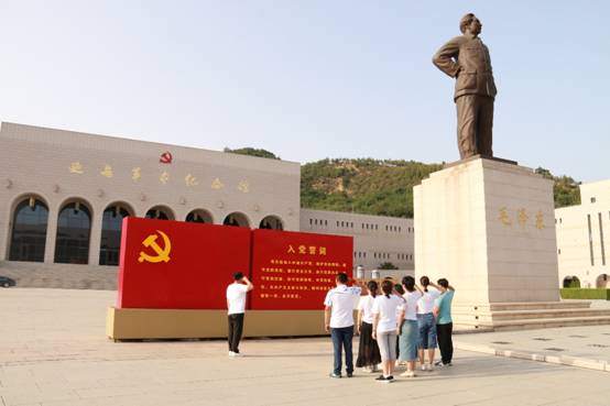 在延安革命纪念馆楼前,哈斯教授领誓,带领全体党员重温入党誓词。重温入党誓词,是每名共产党员对初心与使命的回望;学习革命历史,是每个中国人对智慧和力量的汲取。全体党员在先辈的革命精神感召下,通过宣誓更加坚定了共产主义信念,时刻提醒自己不忘对党作出的庄严承诺。