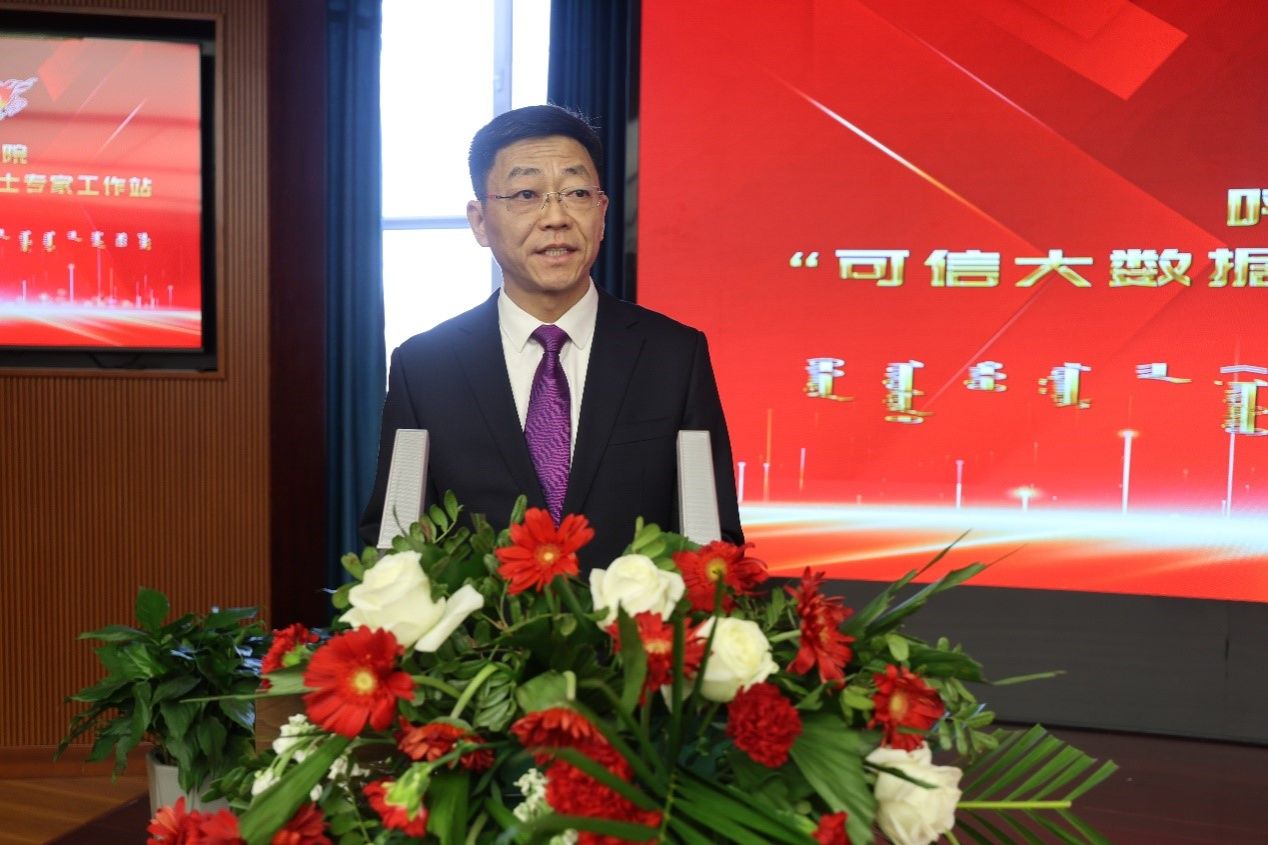 韩伟新在讲话中表示,建设“可信大数据与人工智能”院士专家工作站是学校立足新发展阶段,贯彻新发展理念,推动学校事业高质量发展的重要举措,是学校贯彻落实《国务院关于推动内蒙古高质量发展 奋力书写中国式现代化新篇章的意见》,服务支撑习近平总书记交给内蒙古的两件大事做出的实际行动。工作站将紧跟互联网等技术的发展步伐,深入落实自治区大数据发展战略,为学校的科学研究、学科建设、人才培养和社会服务等提供智力支持和咨询服务。