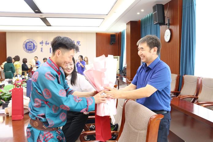 活动中,荣休教师斯日古楞、冯培禄教授分享他们40年的教育教学经验和人生感悟;获得2024年“师德标兵”“三育人”先进个人依次分享经验交流;企业和新入职教师分享感言。