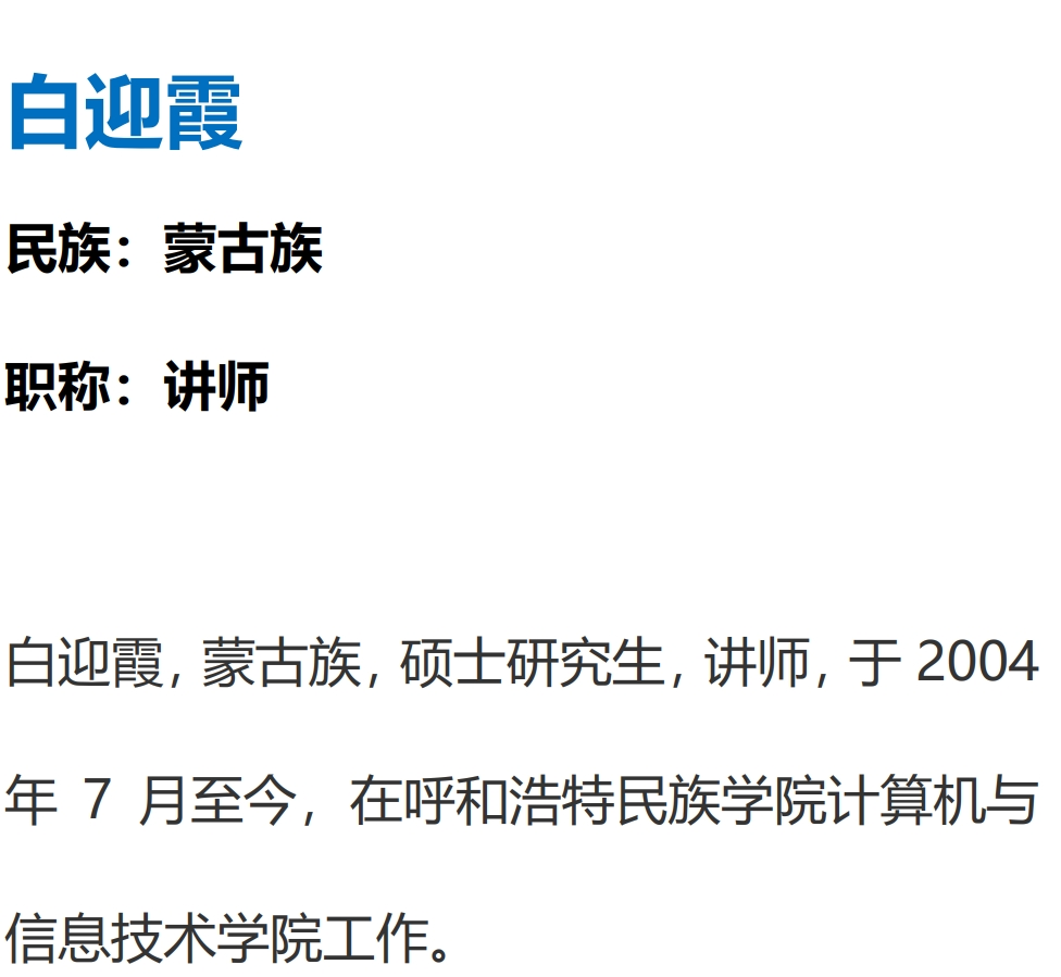 4. 白迎霞. 计算机科学与技术专业课程团队建设研究——以365英国上市公司为例,呼伦贝尔学院学报,2021(01):57-59.