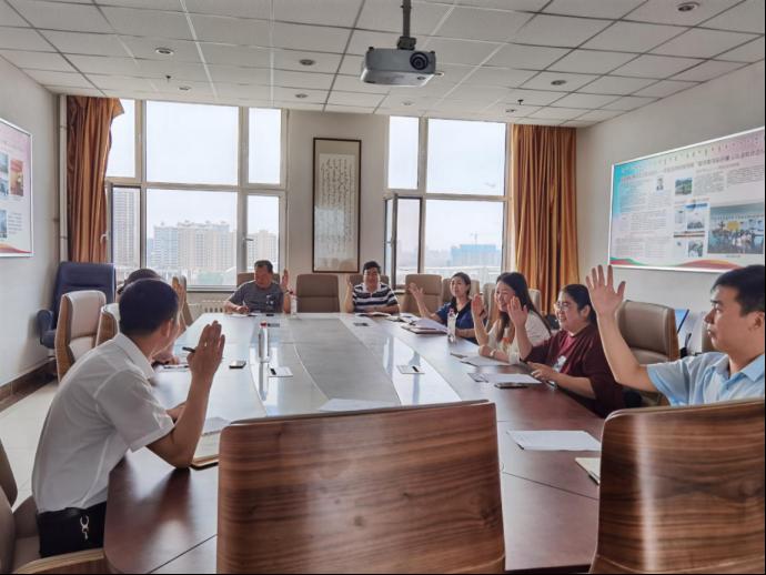 7月15日下午,在综合楼8楼会议室教务处党支部召开支部党员大会,讨论葛根佐拉同志预备党员转正问题。教务处全体党员参加会议,支部副书记佟繁荣同志主持会议。