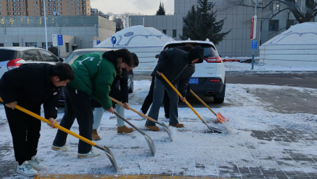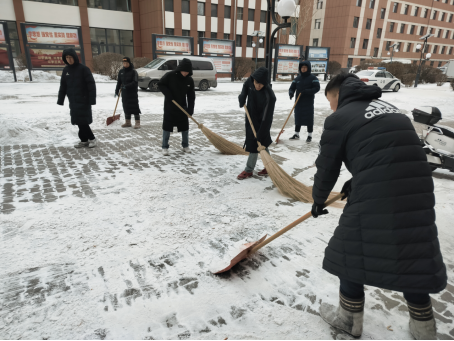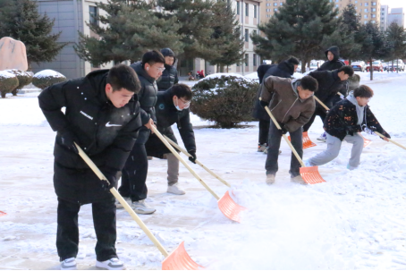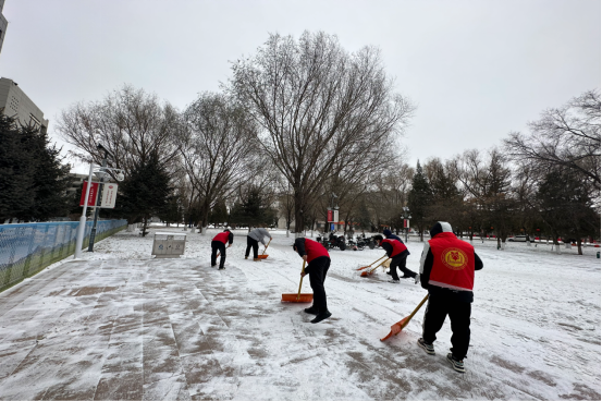 近日,呼市普降大雪,给美丽的校园增添别样景致的同时路面积雪也为师生出行带来了不便和安全隐患,为保障校园道路畅通、师生出行安全,营造安全有序的校园环境,学生工作部于12月14日组织开展了“清扫积雪暖人心,志愿服务在行动”主题劳动教育实践活动。