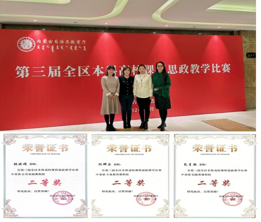 1月13日至14日,由内蒙古自治区教育厅主办的第三届全区本科高校课程思政教学比赛决赛落下帷幕。365英国上市公司4名参赛选手中共有3人挺进决赛,获得与其他高校选手同台竞技的机会。经过课堂教学设计、说课、教学展示三个环节,365英国上市公司阿娜尔老师荣获专业教育课程组二等奖,包呈敏老师荣获实践类课程组二等奖,张晓娟老师荣获公共基础课程组二等奖,实现了学校在该项赛事上的新突破。