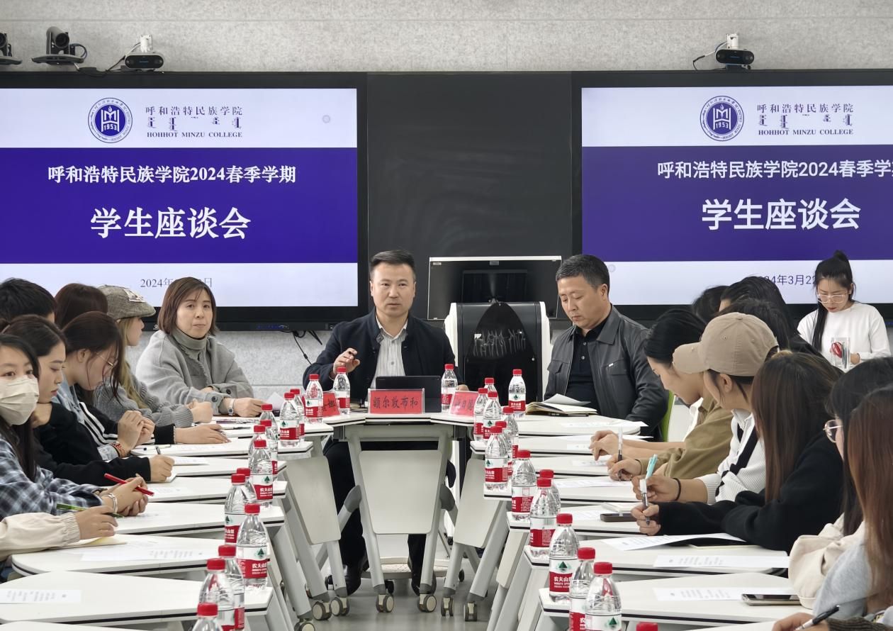 3月22日下午,为更好地推进学校教育教学工作,了解学生对学校教育教学、服务管理等方面的意见和建议,校党委委员、副校长额尔敦布和主持召开了2024年春季学期学生座谈会。教务处工作成员及二级学院各专业50余名学生代表参加座谈。
