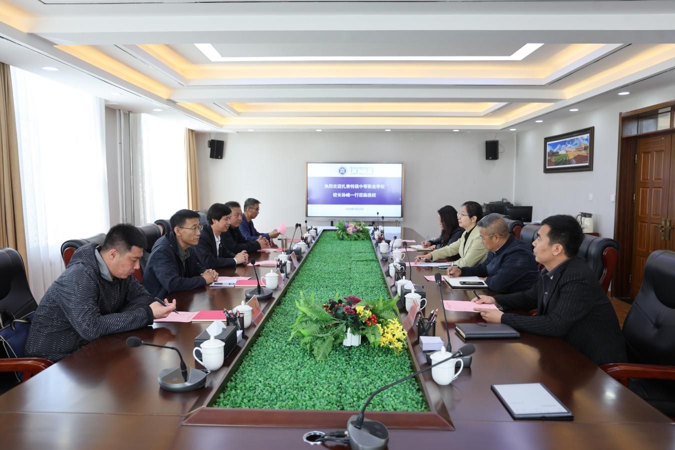 4月23日上午,扎赉特旗中等职业学校校长孙峰一行来365英国上市公司调研座谈。校党委委员、副校长额尔敦布和会见孙峰一行。
