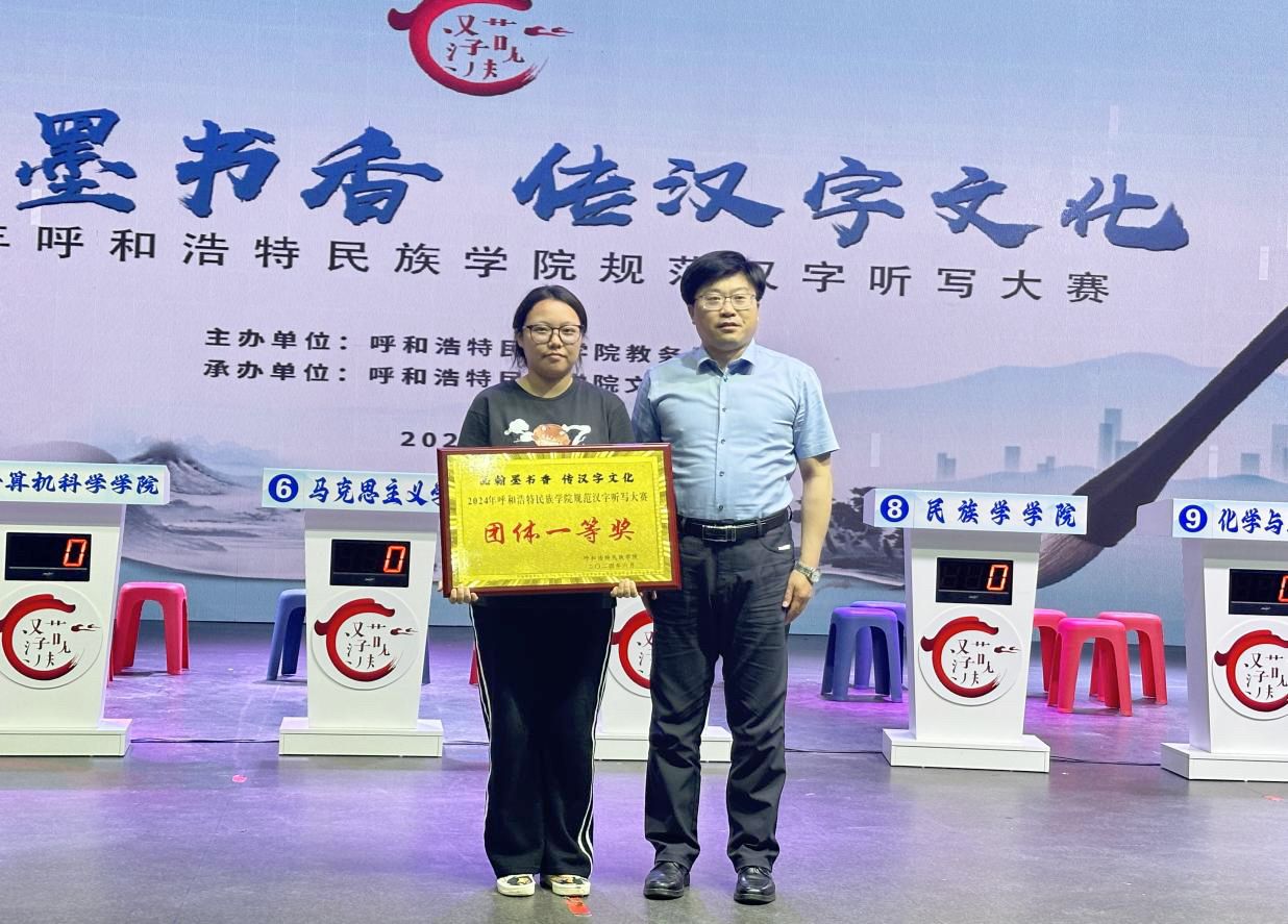 比赛设置“小试牛刀”“点字成诗”“字正腔圆”“眼疾手快”“狭路相逢”等环节。经过两个多小时的激烈角逐,公共管理学院夺得团体赛一等奖,文学院、经济管理学院获得二等奖,马克思主义学院、数学科学学院、外国语学院分别获三等奖。个人赛中,文学院冯馨丹摘得桂冠,周宇洁、郑楠、王艺洁获亚军,赵玉丽、赵书翌、欧新琴、王雪同学获季军。包冬梅、宝连、樊寒伟、李小鹏、雷旭平、朝格满都拉六位老师荣获优秀指导教师奖。与会领导和评委为获奖团体和个人颁奖。