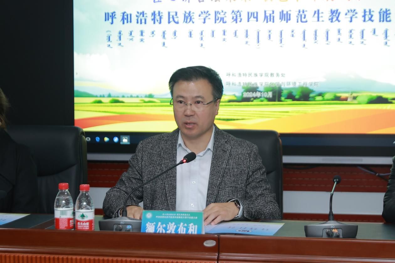 校党委委员、副校长额尔敦布和出席开幕式并致辞,他指出,过去三届大赛都涌现出一批批教学新星,他们以独特的视角解读教材,以创新的方法启迪思维,用真挚的情感触动心灵。这些成功的案例,为今天的比赛树立了标杆,激发了更多的可能。参赛选手们要通过这场技能大赛,以教学为媒,以热情为笔,绘制属于自己的教育蓝图。作为未来的教育工作者,一要做到勇于创新,敢于尝试;二要做到关注学情,因材施教;三要做到情感投入,以德化人。希望大家怀揣着对教育的热爱与敬畏,牢记师范生的责任和使命,坚定“弘扬教育家精神,做新时代大先生”的理想信念,不忘初心,砥砺前行,在教书育人的道路上留下坚实的足迹,绽放出最耀眼的光芒。