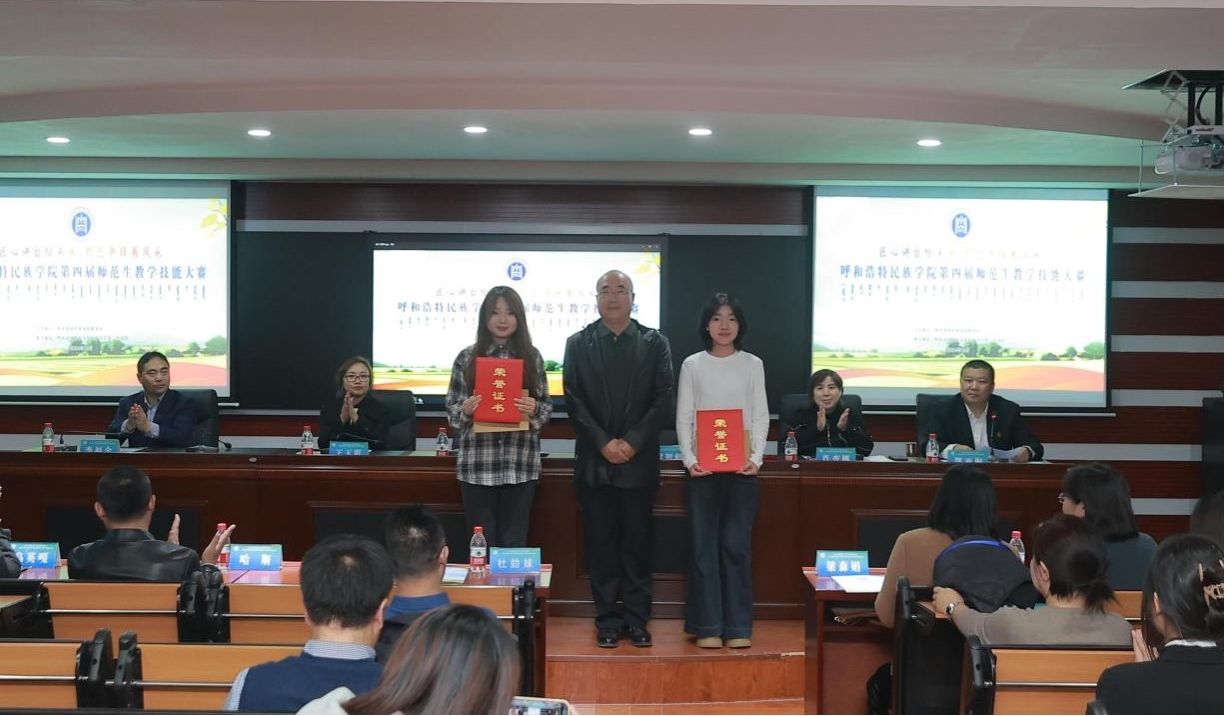 闭幕式上,大赛评委组组长、玉泉区教育局局长助理、十二中副校长、中学高级教师冀智彪,呼市蒙校初中教务主任、中学高级教师王玉霞就选手们的表现进行了点评。教务处处长肖查娜宣读比赛结果,校党委委员、副校长额尔敦布和同特邀评委一起为获奖集体和个人颁奖。