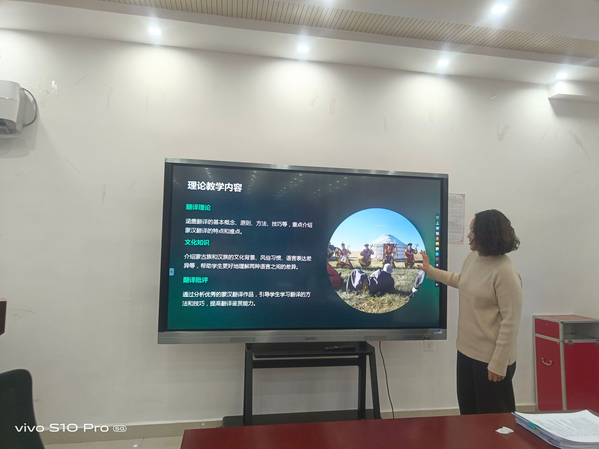 此次“说课程”活动,不仅是蒙古学学院课程建设成果的集中展示,更是为全体教师搭建了一个互学互鉴、共同进步的优质平台。通过深入交流,教师们对各课程的建设情况与教学特色有了更为全面深刻的了解,为进一步提升教学质量、深化课程建设注入了新的动力与智慧源泉,也为学院未来的教育教学发展描绘了更加绚丽的蓝图。