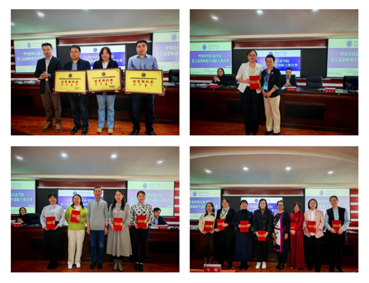 闭幕式上,额尔敦布和宣读比赛结果后与特邀评委一起为获奖教师和集体颁发了荣誉证书、奖牌。评委组组长、内蒙古工业大学陈亚杰教授对本次比赛进行了全面而深入的专业点评。她着重从教学理念、教学内容、课程思政、教学过程、设计创新、教学效果等六个维度展开评析,既肯定了教师们在教学创新方面的亮点与突破,也针对存在的问题提出了宝贵的改进建议,为教师们进一步提升教学创新能力指明了方向。