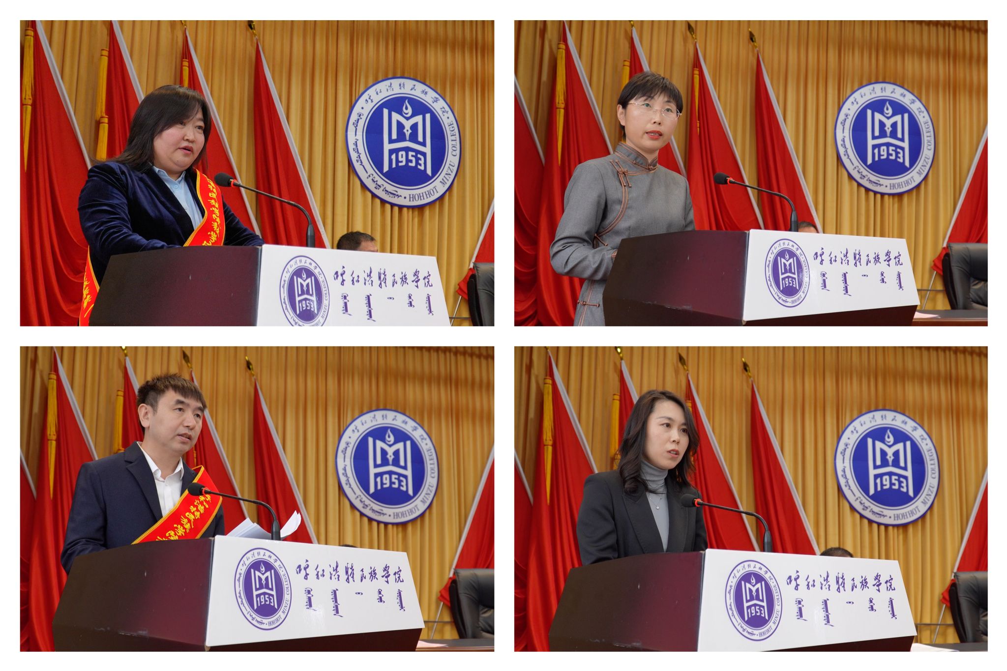 校级教学成果奖一等奖获奖团队代表赵梅兰、校级标杆教研室代表吴晓红、校级教学工作先进集体代表包乌格德勒、第四届全区本科高校课程思政教学比赛一等奖获得者吴丹依次作交流发言,她们结合各自的工作经验和实践成果,与大家分享了宝贵的教学经验。