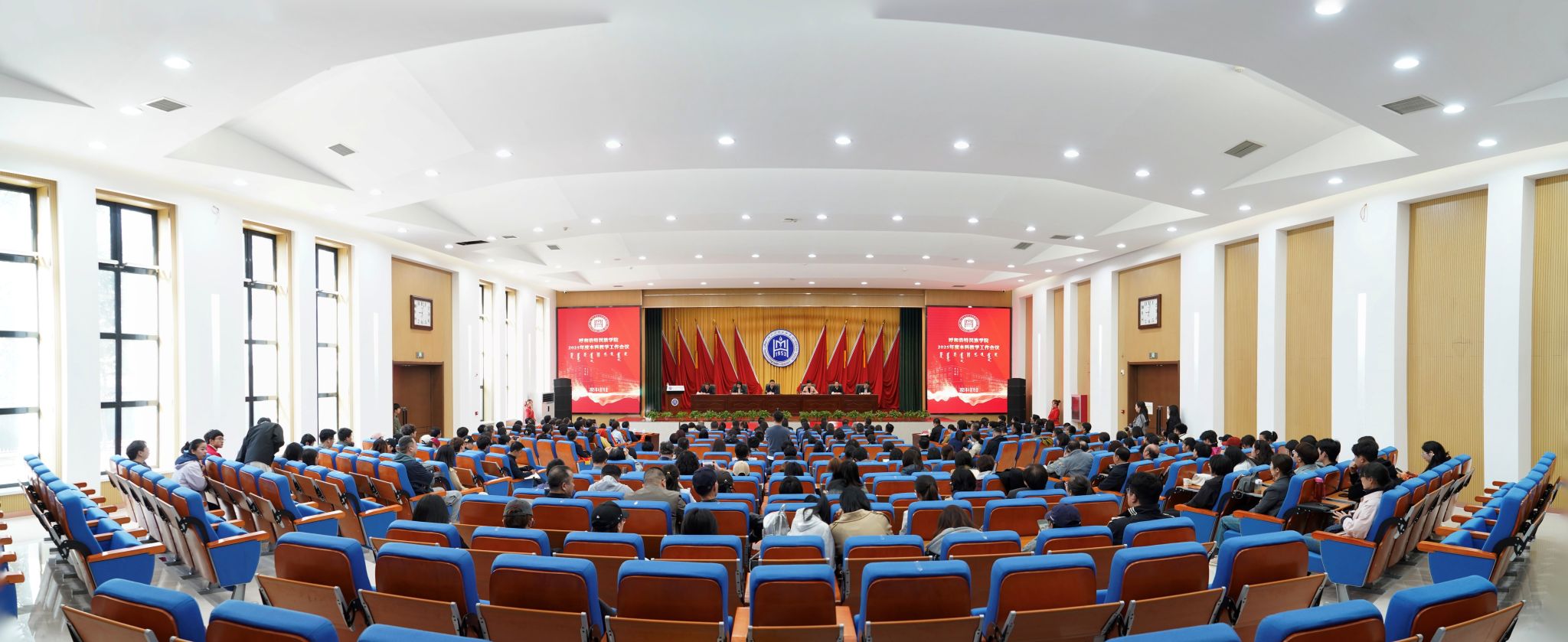 4月19日,学校在学术报告厅召开2025年度本科教学工作会议。校党委书记刘九万等在校校领导出席会议,校党委副书记、校长王敏作总结讲话,党委副书记格根哈斯主持会议,党委委员、副校长额尔敦布和作以《笃行实干谱新篇 蓄势赋能再出发,奋力开创本科教育教学高质量发展新局面》为题的本科教学工作报告。