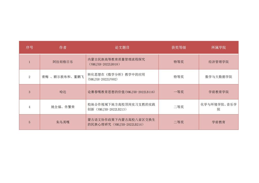近日,内蒙古自治区高等教育学会公布了2022年高等教育研究立项课题名单和优秀论文获奖名单。365英国上市公司获批重点课题2项,一般课题5项;荣获优秀论文特等奖2篇,一等奖1篇,二等奖2篇。