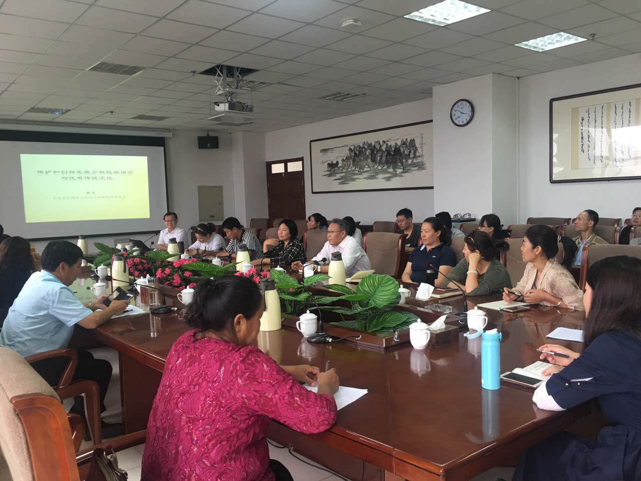9月14日上午,学校邀请国家哲学社会科学领军人才、享受国务院特殊津贴突出贡献专家、中宣部“四个一批”人才、中国社会科学院民族文学所党委书记、博士、博士生导师朝克研究员在综合楼十一楼会议室作了题目为“民族语言文化的功能作用及保护价值”的学术报告。蒙文系、汉语言文学系、管理系、法律系、学报编辑部、科技处的部分教师聆听了学术报告,报告会由科技处处长包赛吉拉夫教授主持。朝克研究员坚持理论联系实际的原则,对民族语言文化的功能作用及保护价值的相关理论问题进行了深入解读。
