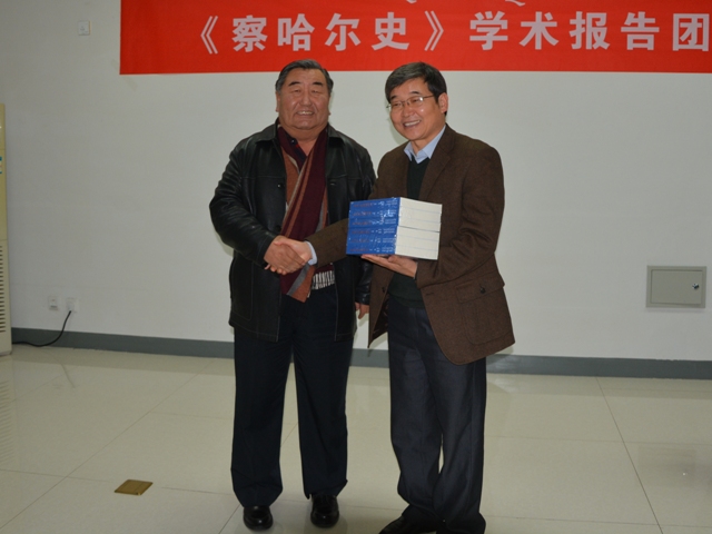 阿拉坦仓副院长讲话 潘小平会长赠书