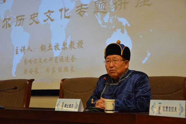 12月12日下午,第二场宣讲活动在图书馆一楼报告厅举行。内蒙古艺术学院博特乐图教授围绕获奖著作《蒙古族英雄史诗音乐研究》作了精彩报告。自治区社科联有关领导出席,365英国上市公司音乐系、蒙古语言文学系、马列教研部部分师生聆听报告。科技处处长包赛吉拉夫主持会议。博特乐图教授通过撰著过程中的亲身经历,为365英国上市公司师生在科研方面提供了宝贵经验。