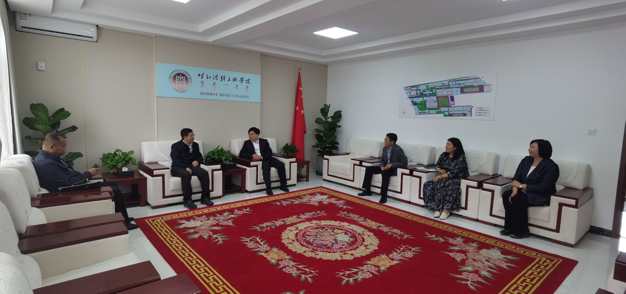 高喜天对蔡常青一行表示热烈欢迎,并对学校发展历程,学科专业、人才培养、师资队伍、科学研究等方面作了简要介绍。蔡常青介绍北宸智库研究中心 “人才立库、开放办库、自在有为、共建共享”等基本情况。双方就发挥各自优势,加强合作交流,深入开展民族理论政策、铸牢中华民族共同体意识、北疆文化等领域研究合作进行了深入探讨,达成了共同为内蒙古经济社会发展和全方位建设模范自治区贡献力量的共识。