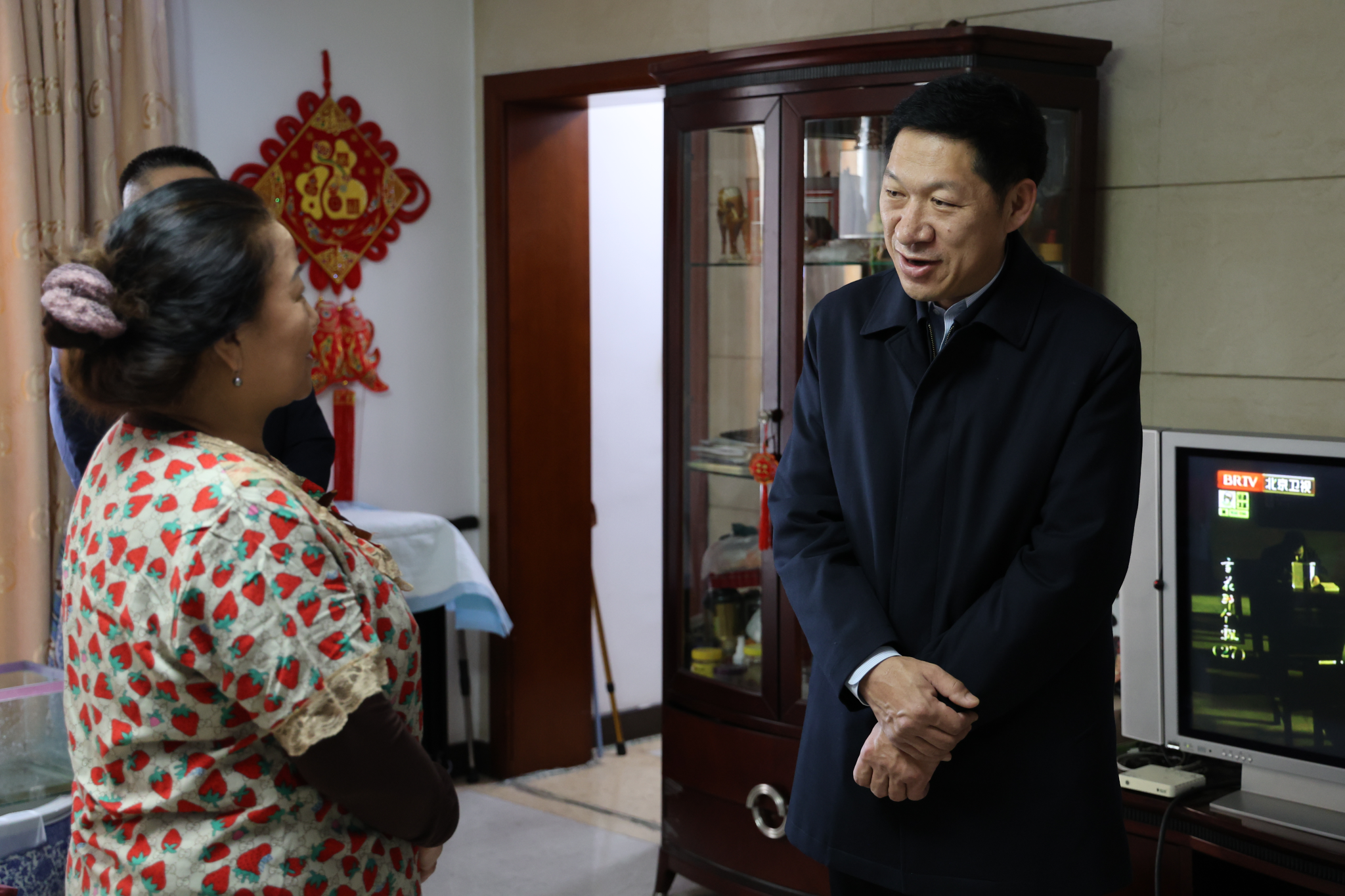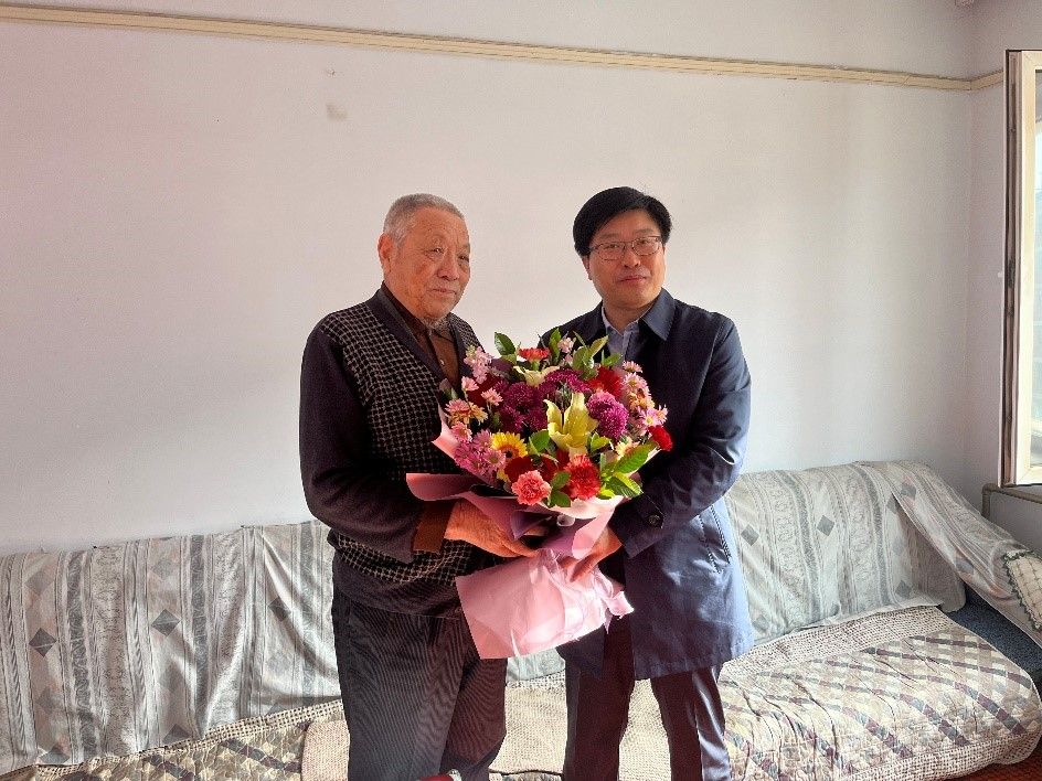 刘九万书记看望建校初期老教师涛迪,并与其子女亲切交谈