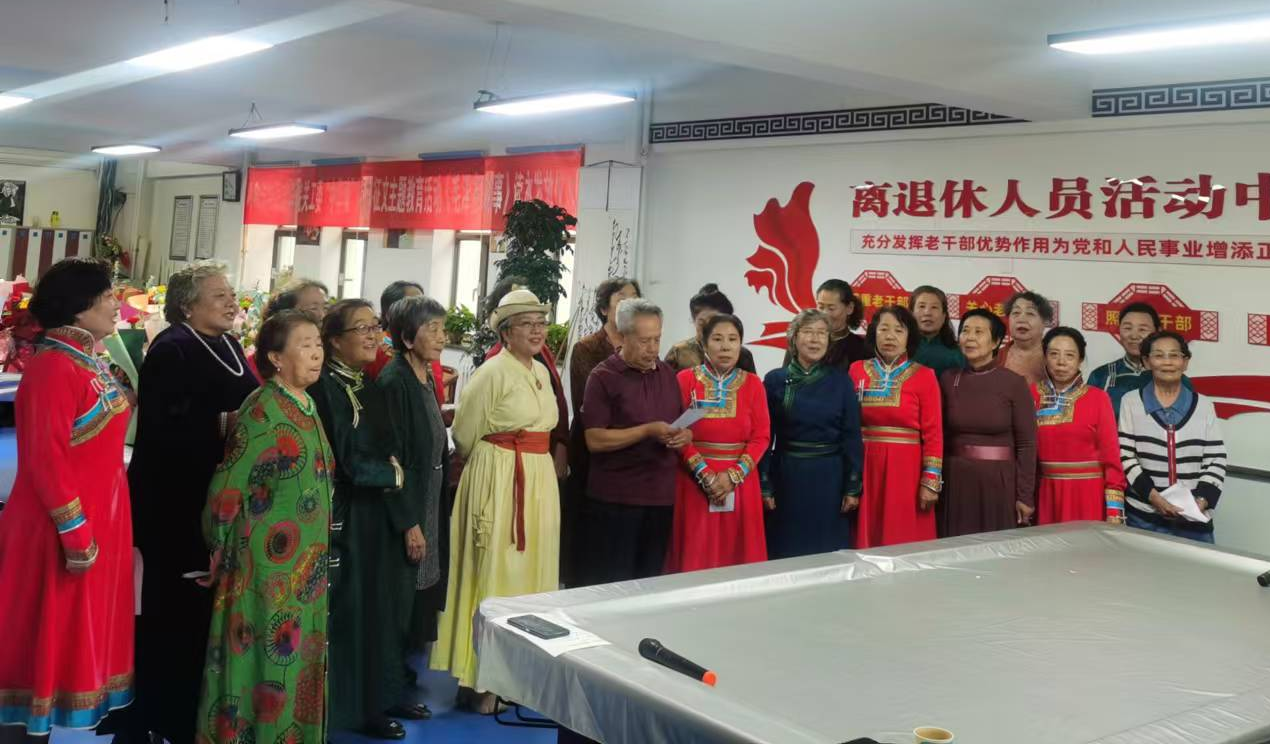 全体与会人员合影留念后,进行形式多样的文艺表演。文艺表演在离退休人员工作处原处长宝音的优美歌声中开场,在合唱队老同志们的合唱、独舞、京剧表演中达到高潮,在老领导们的精彩歌唱中落下帷幕。此次活动展现了离退休教职工丰富多彩的退休生活和积极快乐的精神面貌。