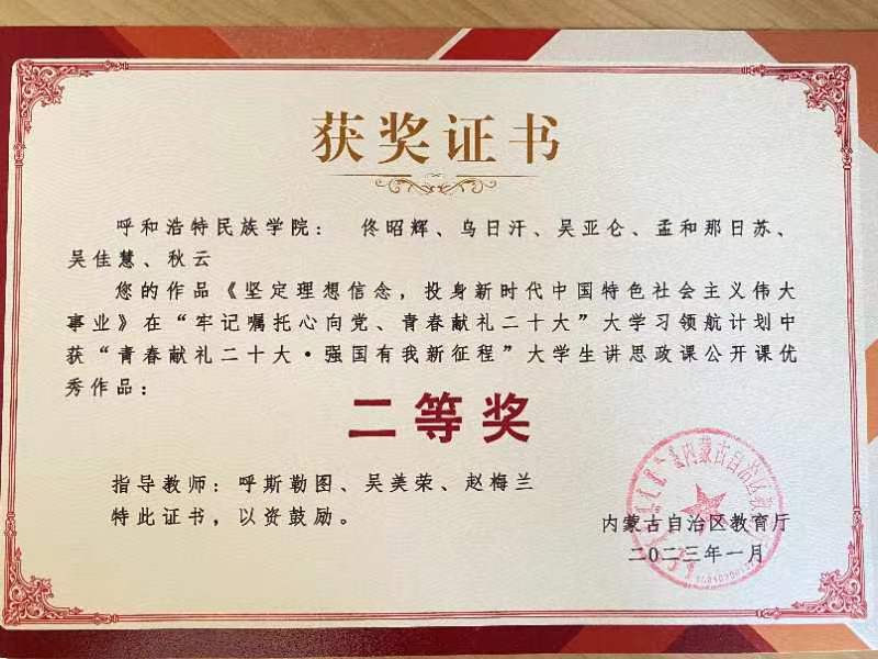 我院学生获得2022年度自治区大学生讲思政课优秀作品二等奖
