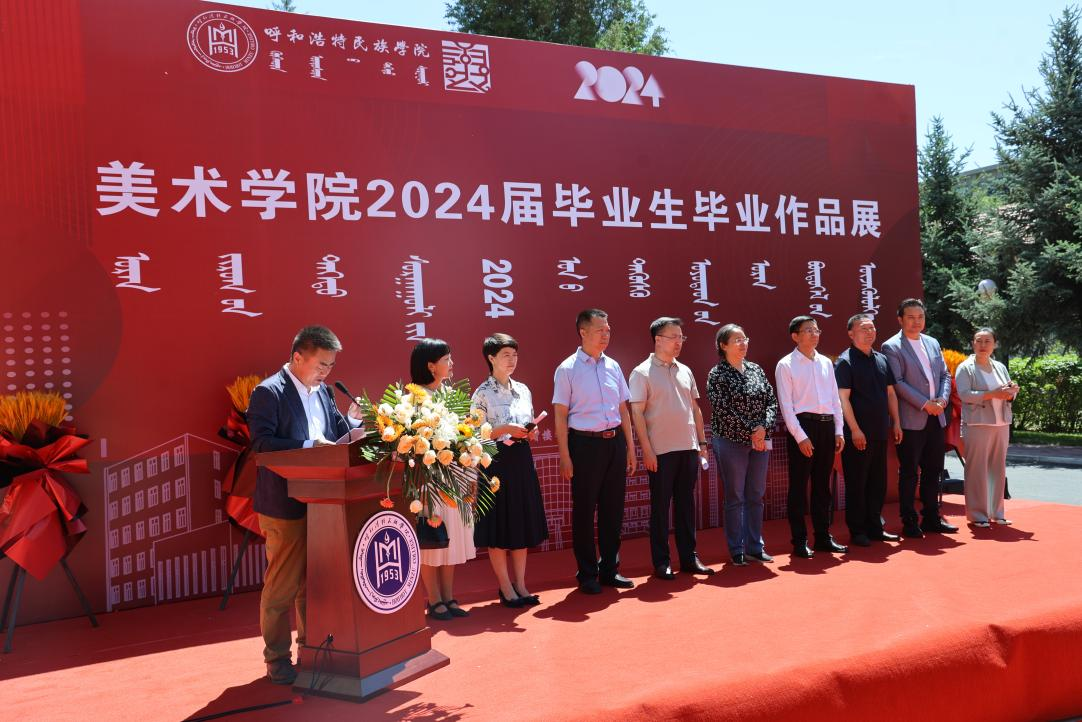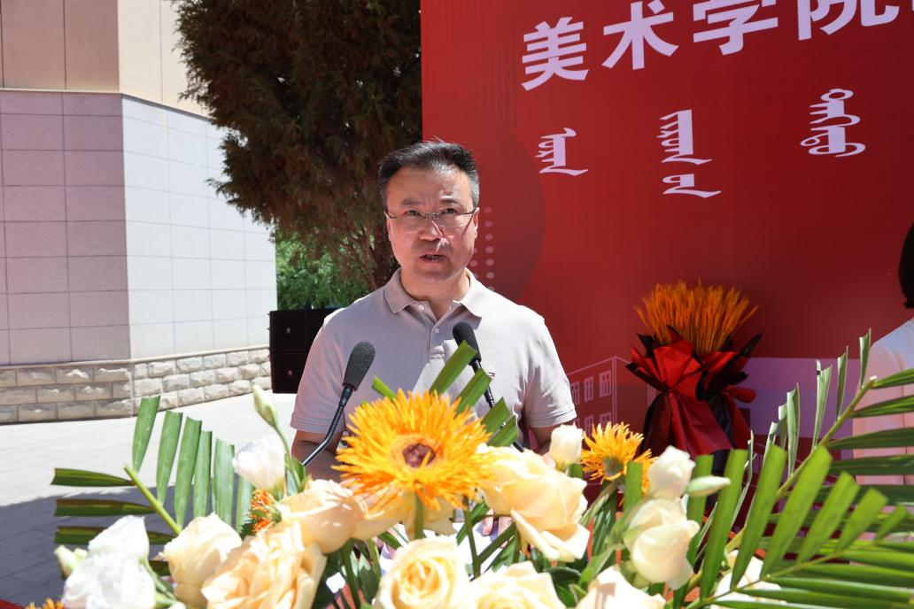 额尔敦布和致开幕词,他充分肯定了美术学院近年来在学科建设、教学质量提升、科学研究等方面的工作成绩。他希望,美术学院继续加强内涵建设,培养更多优秀的美术教育人才;深化校企合作,培养更多符合市场需求的应用型人才;推动教学改革,培养更多敢于超越自我的创新型人才;强化党建引领,以铸牢中华民族共同体意识为主线,培养更多可靠的社会主义建设者和接班人。他向广大毕业生顺利毕业表示祝贺,希望大家在人生的新起点上开拓新局面,在艺术生活的道路上勇攀新高峰,取得更加丰硕的成果。