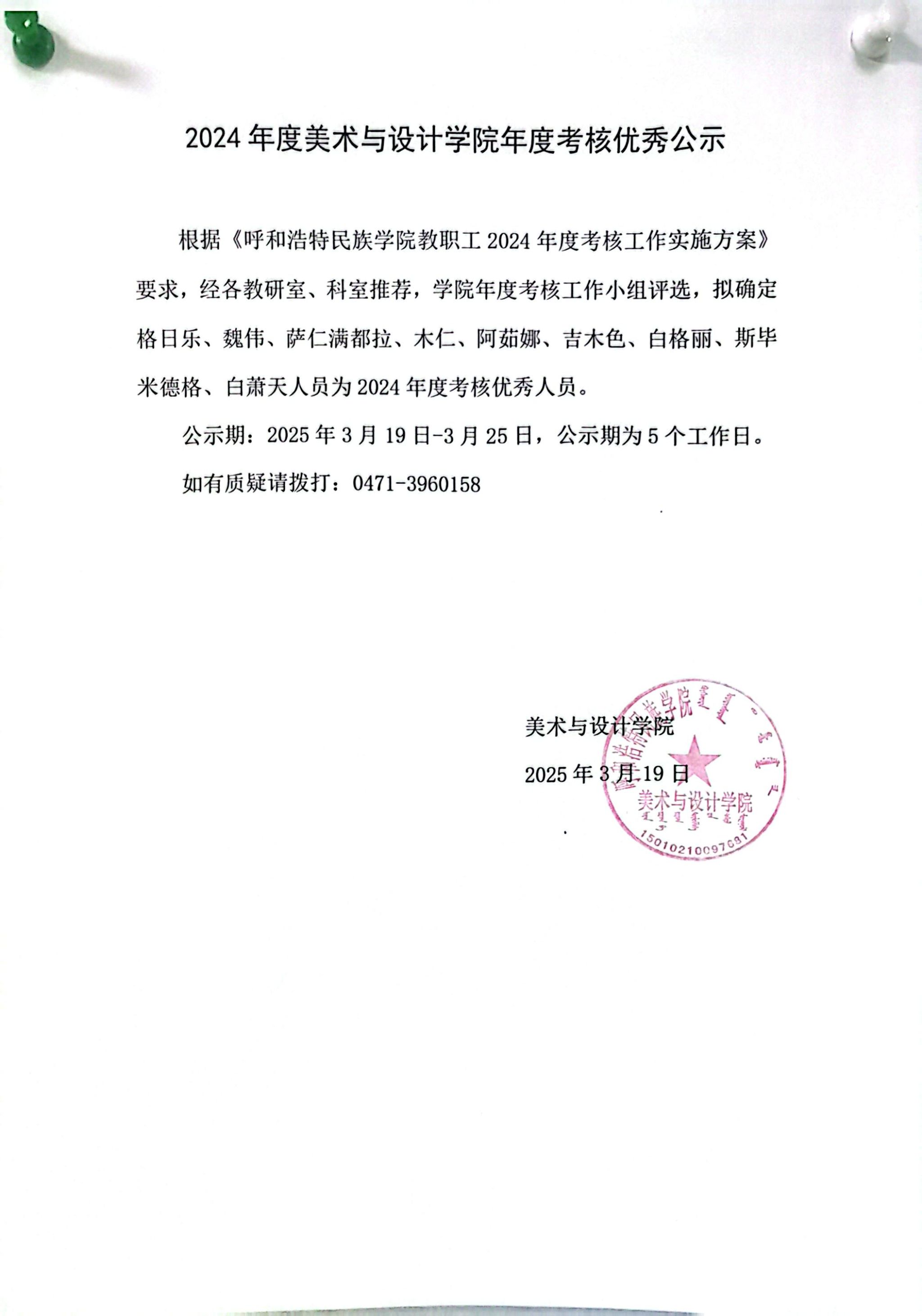 2024年度美术与设计学院年度考核优秀公式