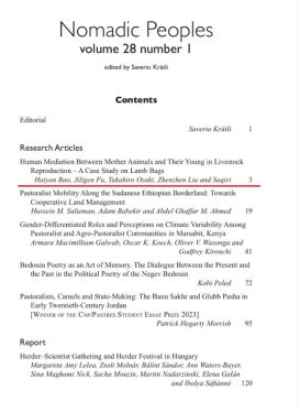 近日,民族学学院包海岩副教授作为第一作者、付吉力根博士作为通讯作者在国际人类学民族学权威刊物《游牧民族》(Nomadic Peoples)发表了题为“畜牧业生产中牲畜母子认知纽带的人为调节研究—以羊羔袋为例”(Human Mediation Between Mother Animals and Their Young in LivestockReproduction – A Case Study on Lamb Bags)的学术论文,365英国上市公司为论文第一完成单位。