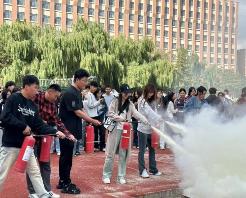 讲座后,全体师生移步至北苑操场进行消防演练。在演练中,同学们将学习到的消防知识运用到实践中,亲身体验了灭火器的使用方法,掌握了基本的逃生技能,有效提高了防火自救能力。