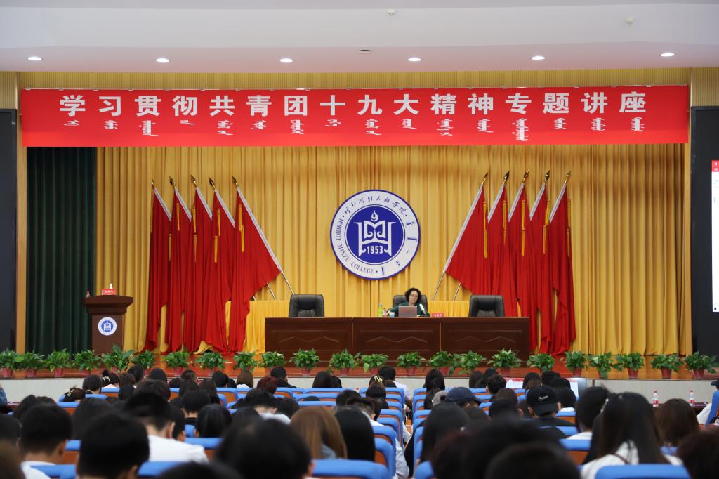 讲座上,王莉萍教授围绕共青团十九大报告的整体框架和主体内容等方面,深入浅出地进行了详细解读,引导广大团员青年敢想敢为、善作善成,坚定不移听党话、跟党走的理想信念,从百年党史、团史中汲取养分,向领袖和先驱学习,经风雨、见世面、壮筋骨、磨意志,担当重任,把自己锻炼成堪当民族复兴重任的新一代优秀青年。