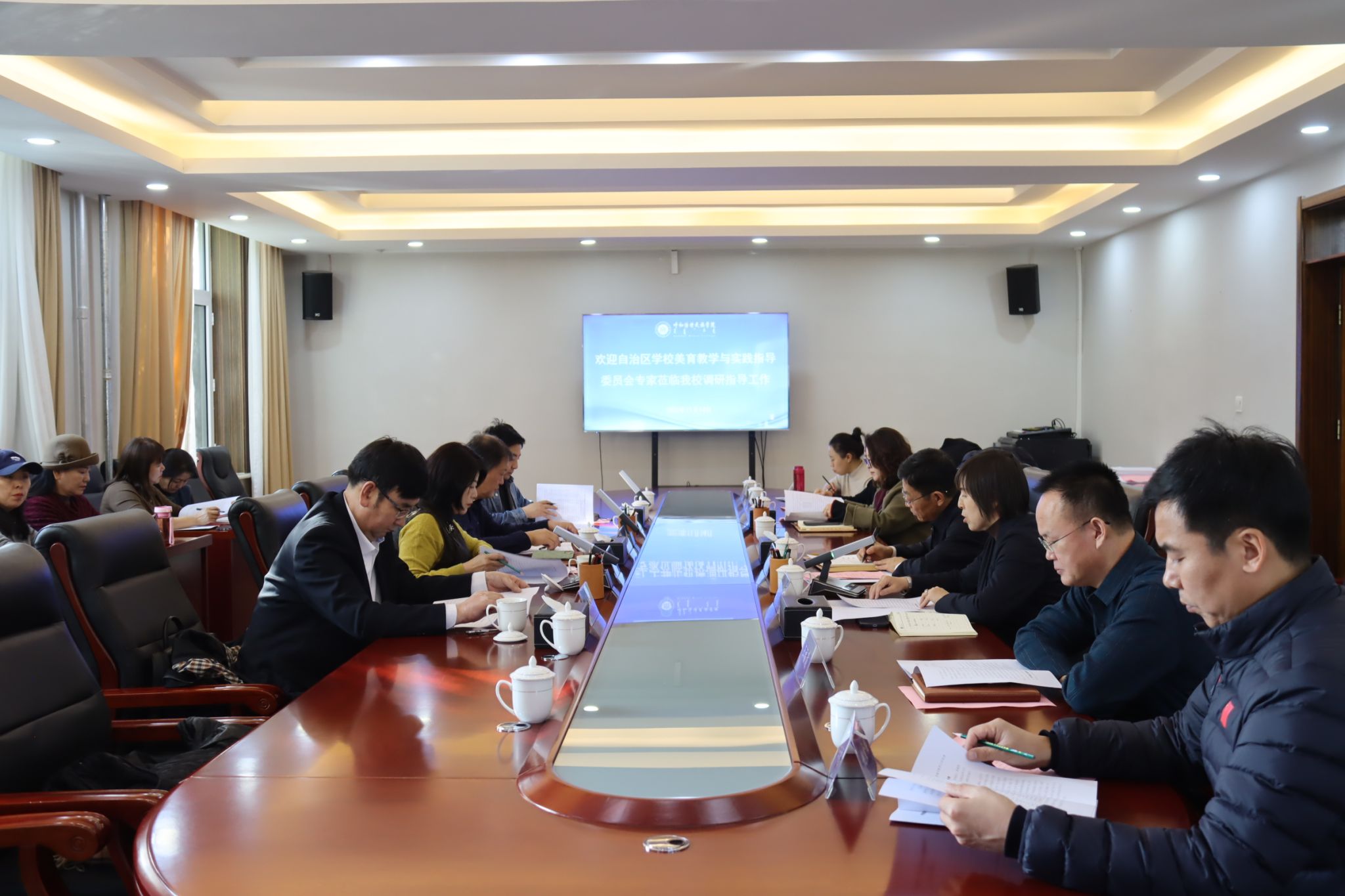 教务处、美术学院、音乐学院、文学院、蒙古学学院负责同志及美育教研室教师代表出席调研会并陪同考察。