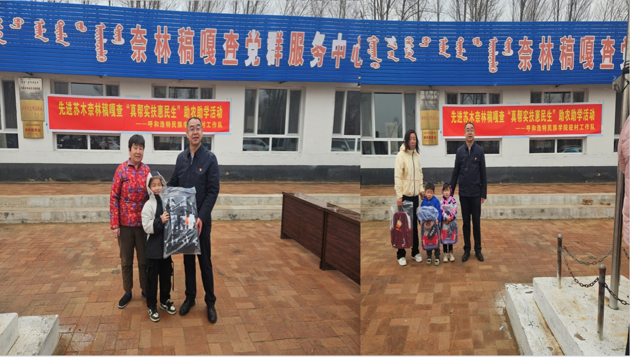 活动上,学校向包联帮扶的奈林稿嘎查义务教育阶段的每名学生捐赠爱心双肩书包一个,并为家里有两名学生的农牧户每户捐赠2袋化肥、为监测户每户捐赠4袋化肥,以此鼓励学生、学生家庭及困难群众保持积极向上的生活态度,用勤劳自立将日子越过越好。