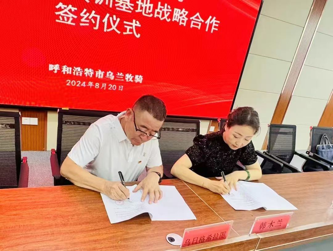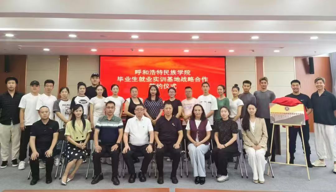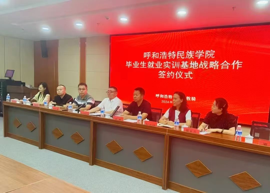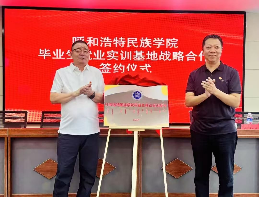 双方代表签订了毕业生就业合作协议,双虎与乌日格希拉图共同为学校毕业生就业实训基地揭牌。