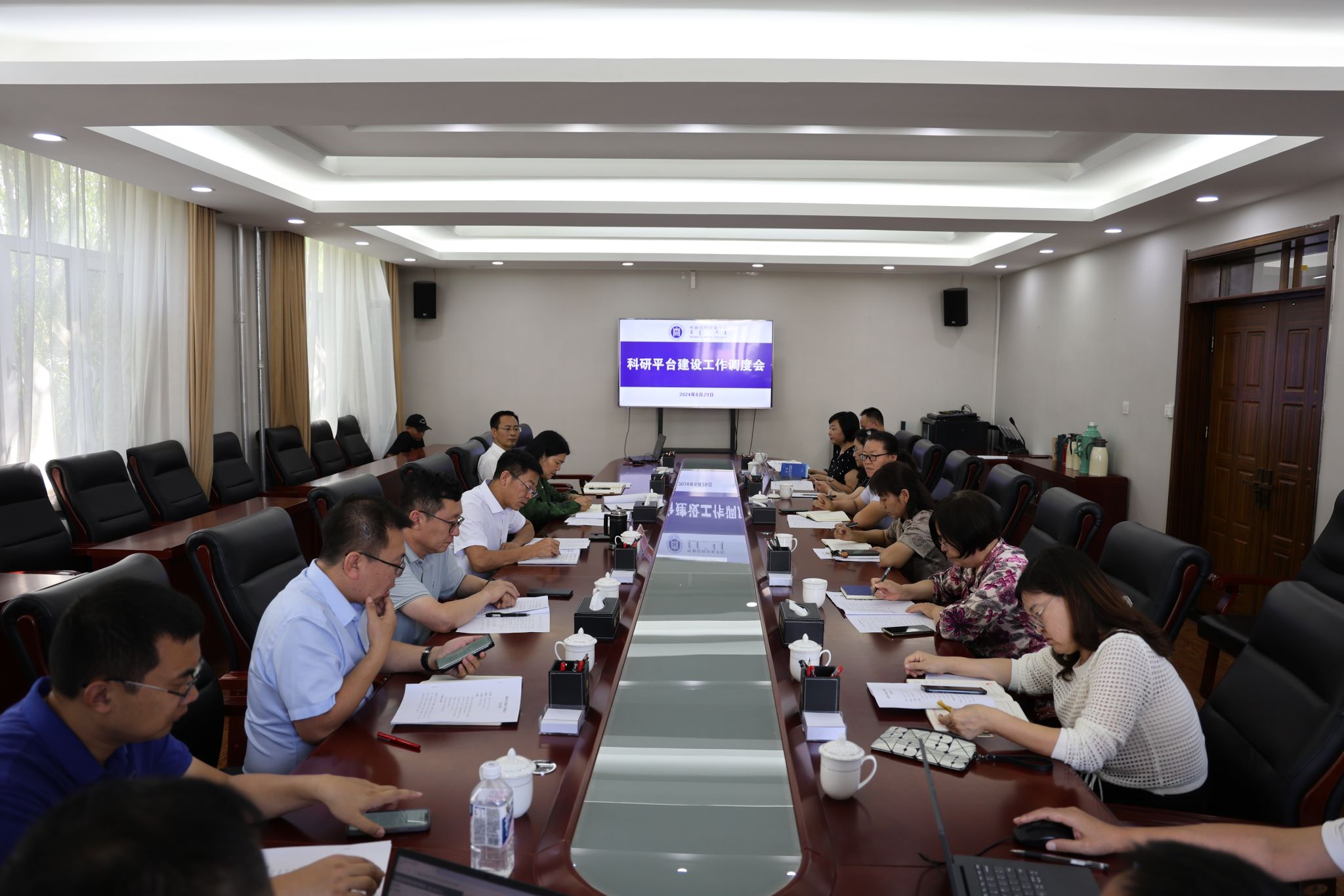 8月29日,学校在办公楼2楼会议室召开科研平台建设工作调度会,校党委委员、副校长高喜天出席,学校各省部级和校级科研平台负责人以及依托建设单位负责人参加会议,会议由科研处(社科处)处长苏布道主持。