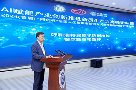 额尔敦布和在致辞中指出,高校在推动科技创新和产业发展中扮演重要角色,要充分发挥高校的科研优势和人才资源,积极参与AI科技研究与应用。他指出,本次“同创杯”大赛是交流人工智能双创成果的重要平台,学校将以本次大会为契机,强化创新人才汇聚,推动更多的AI技术落地生根。