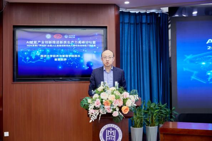 14日上午,AI赋能产业创新推进新质生产力高峰论坛在综合楼12楼会议室举行。中国创造学会理事长徐建平,校党委委员、副校长额尔敦布和,同济大学经济与管理学院院长谢恩,中国创造学会人工智能专委会主任、上海交通大学讲席教授、日本工程院外籍院士李颉等出席论坛并致辞。上海市人工智能学会法人兼秘书长、同济大学电信学院教授汪镭,日本电气通信大学元网络中心主任策力木格,上海盛钧企业集团董事长、睿聆投资控股执执行合伙人黄文平等出席论坛并作主题报告。同济大学经济与管理学院专业学位中心招生主管孔祥星主持论坛。本次论坛共有来自高校、企业、科研单位、社团组织、投资机构等200余位代表参加。