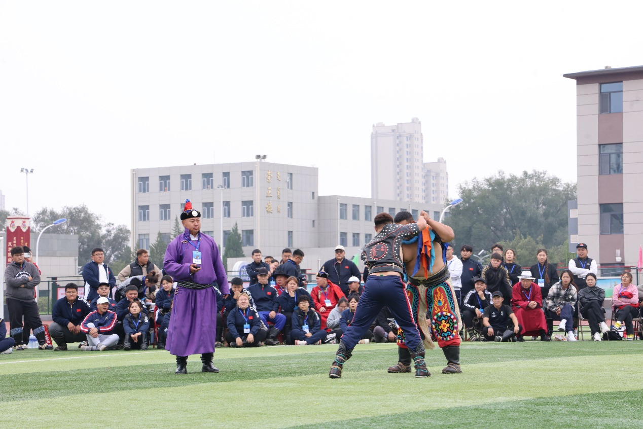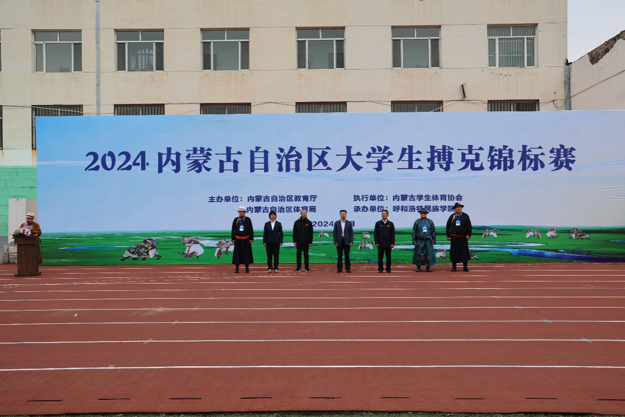额尔敦布和致辞。他表示, 学校一直以来高度重视体育教育工作,坚持德智体美劳五育并举,深入实施三贯通五参与十融入思政工作体系,全面推进三全育人,培养担当民族复兴大任的时代新人。搏克运动在传承民族文化、培养大学生拼搏精神方面具有重要意义。他希望,参赛选手们在比赛中发扬体育精神,赛出风格,赛出水平。