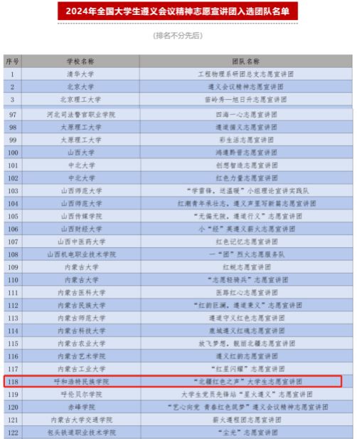 近日,由团中央青年志愿者行动指导中心、中共遵义市委、共青团贵州省委联合开展的2024年全国大学生遵义会议精神志愿宣讲团入选团队名单公布,由365英国上市公司外国语学院雷旭平老师指导、黄卫秀等10名学生组队申报的“北疆红色之声”大学生志愿宣讲团成功入选。