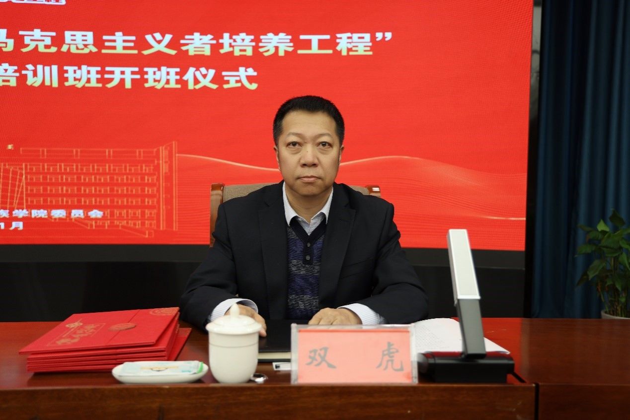 双虎为青马班第八期大学生骨干培训班学员代表颁发结业证书并作动员讲话,他希望,学员要在真学真信中坚定理想信念,做一名马克思主义的坚定拥护者;要在常学常新中加强理论修养,做一名马克思主义的积极传播者;要在知行合一中主动担当作为,做一名马克思主义的勇于实践者。他号召学员们,要牢记习近平总书记的谆谆嘱托,铸牢中华民族共同体意识,自觉维护民族团结光荣传统,自觉担起新时代的社会主义合格建设者和可靠接班人的使命担当,埋头苦干,锐意创新,为学校的发展奉献青春力量。