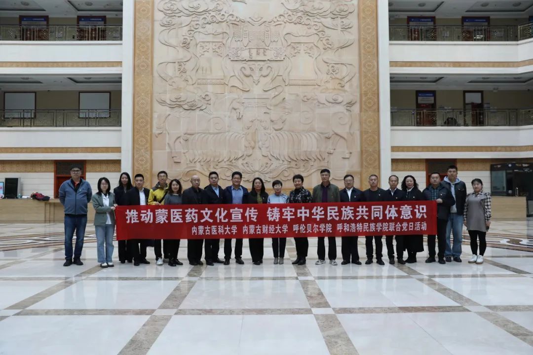 座谈交流会后,四所高校共同开展了“推动蒙医药文化宣传 铸牢中华民族共同体意识”联合党日活动,参观了内蒙古医科大学蒙医药博物馆。