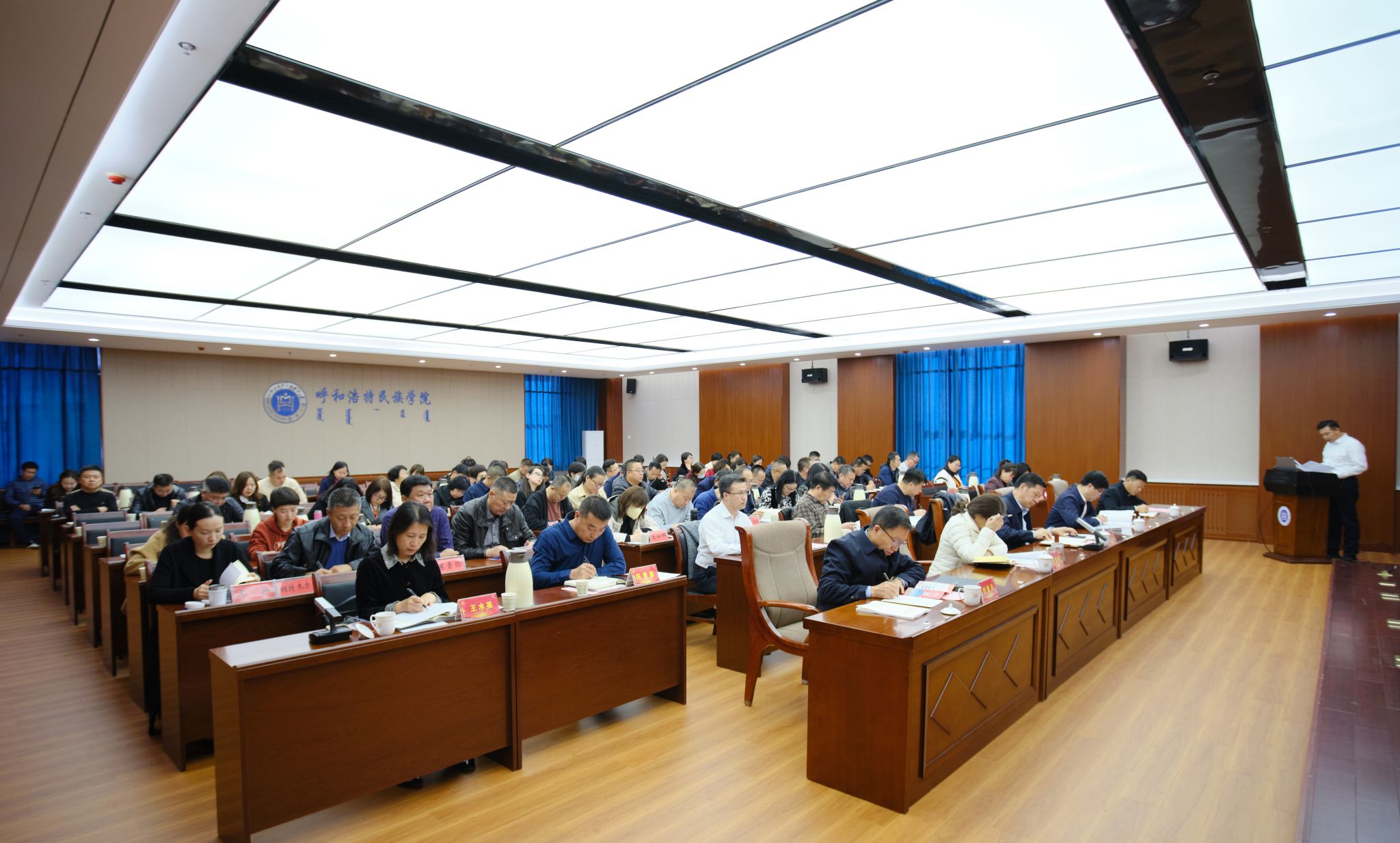 刘九万强调,要充分认识学习宣传六部促进条例的重要意义,将学习宣传条例精神作为当前重要任务,不断提高思想认识和实践自觉,切实抓好传达学习和贯彻落实。要深刻领会条例的深刻内涵,把学习六部促进条例同贯彻落实习近平总书记对内蒙古重要讲话重要指示批示精神结合贯通起来,坚持做到知行合一。要以六部促进条例推动工作提质增效,加强统筹谋划,狠抓贯彻落实,提升工作效能,切实把六部促进条例精神贯彻到学校工作全过程各领域,推动各项工作提速、提质、提效,为自治区办好“两件大事”贡献更多呼民院力量。