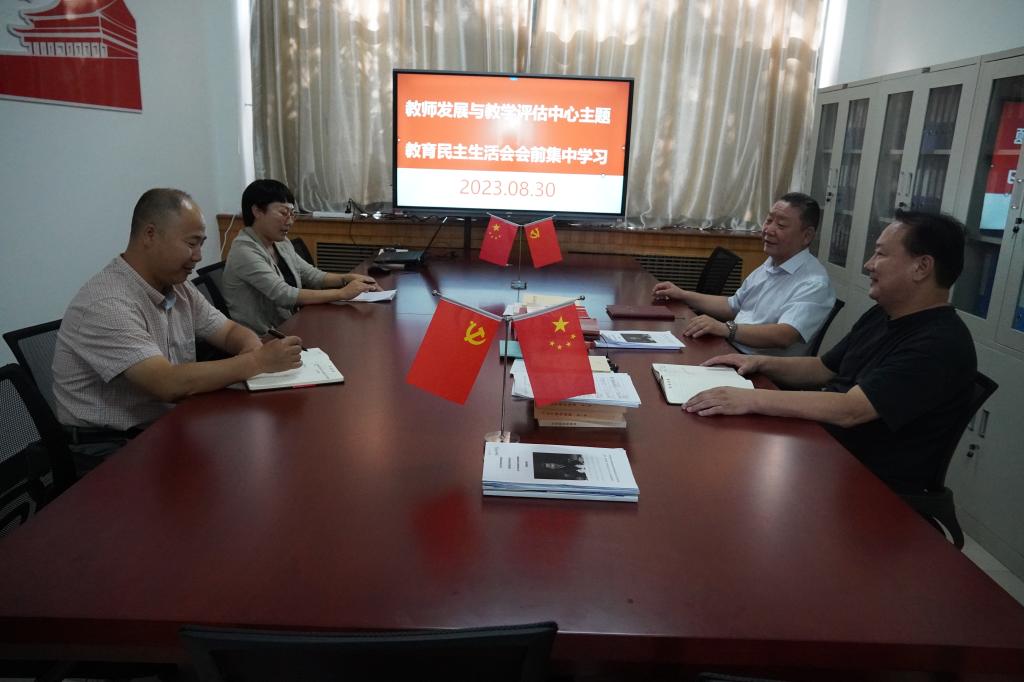 按照学校《关于在学习贯彻习近平新时代中国特色社会主义思想主题教育中开好专题民主生活会的通知》要求,2023年8月30日下午,教师发展与教学评估中心开展了主题教育民主生活会会前集中学习。会上采取观看录像资料和通读原文的形式,学习了习近平总书记关于教育的重要论述、党章、新形势下党内政治生活若干准则等内容。