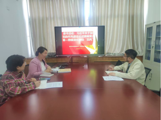 为加强党员干部的作风建设,4月11日,在敏行楼205教学评估与质量监测中心、学报编辑部党支部组织开展了《习近平关于加强党的作风建设论述摘篇》读书活动。读书活动由党支部书记乌云斯日古楞主持并领读学习。