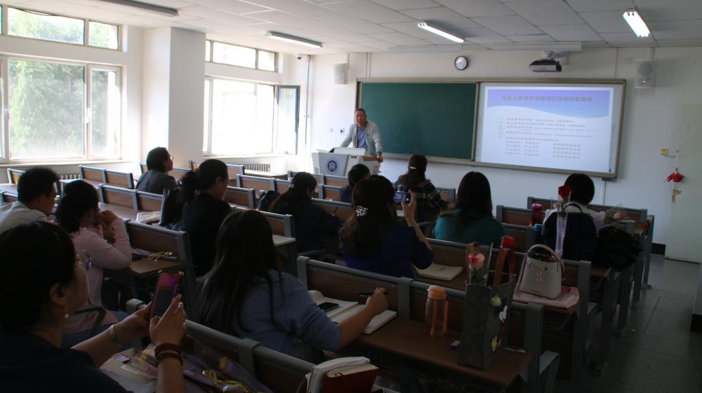 教师发展与教学评估中心主任胡毕斯哈拉图从专业培养目标的定位、毕业要求、课程目标和课程大纲等方面对人才培养修订与师范类专业认证的关键内容进行了培训,详细讲解了培养目标与毕业要求、毕业要求与课程、毕业要求指标点与课程目标任务、课程目标与大纲内容的矩阵关系。