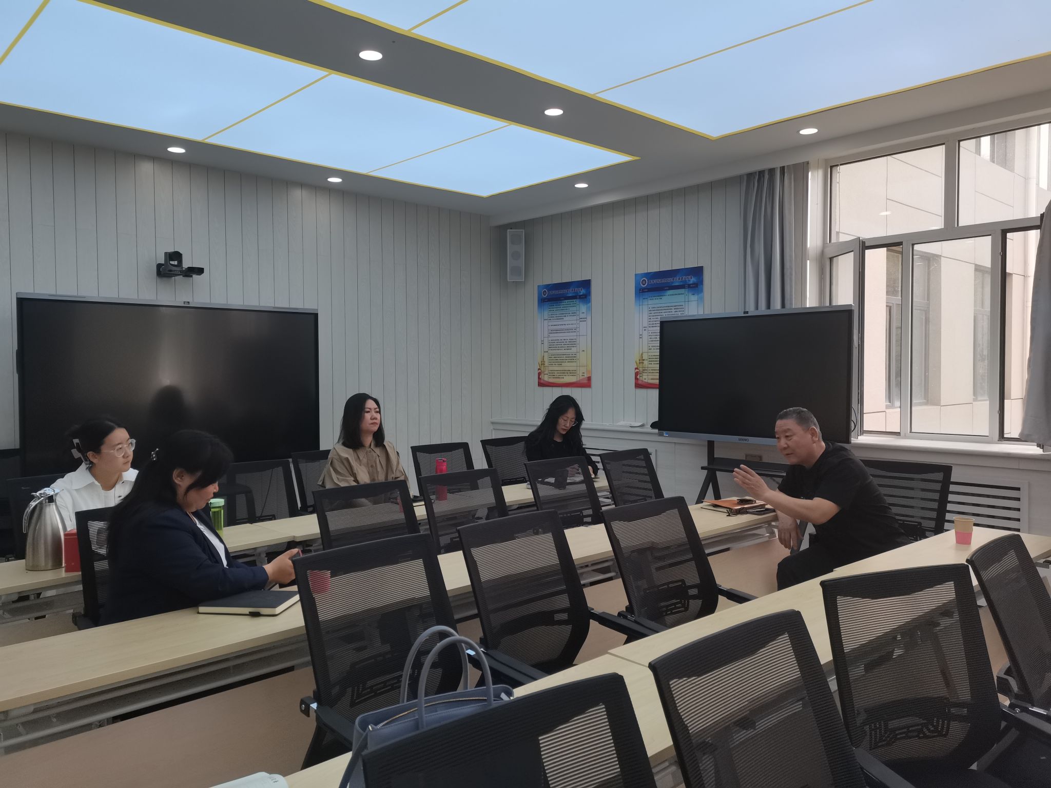 马克思主义学院副院长赵梅兰汇报了师范认证工作进展情况和下一步工作计划,提出了在公共课、基础设施建设、案例库建设、材料室和研习等方面存在的问题,教师发展与教学评估中心负责人认真听取了需求,提出了解决问题的方法和措施。