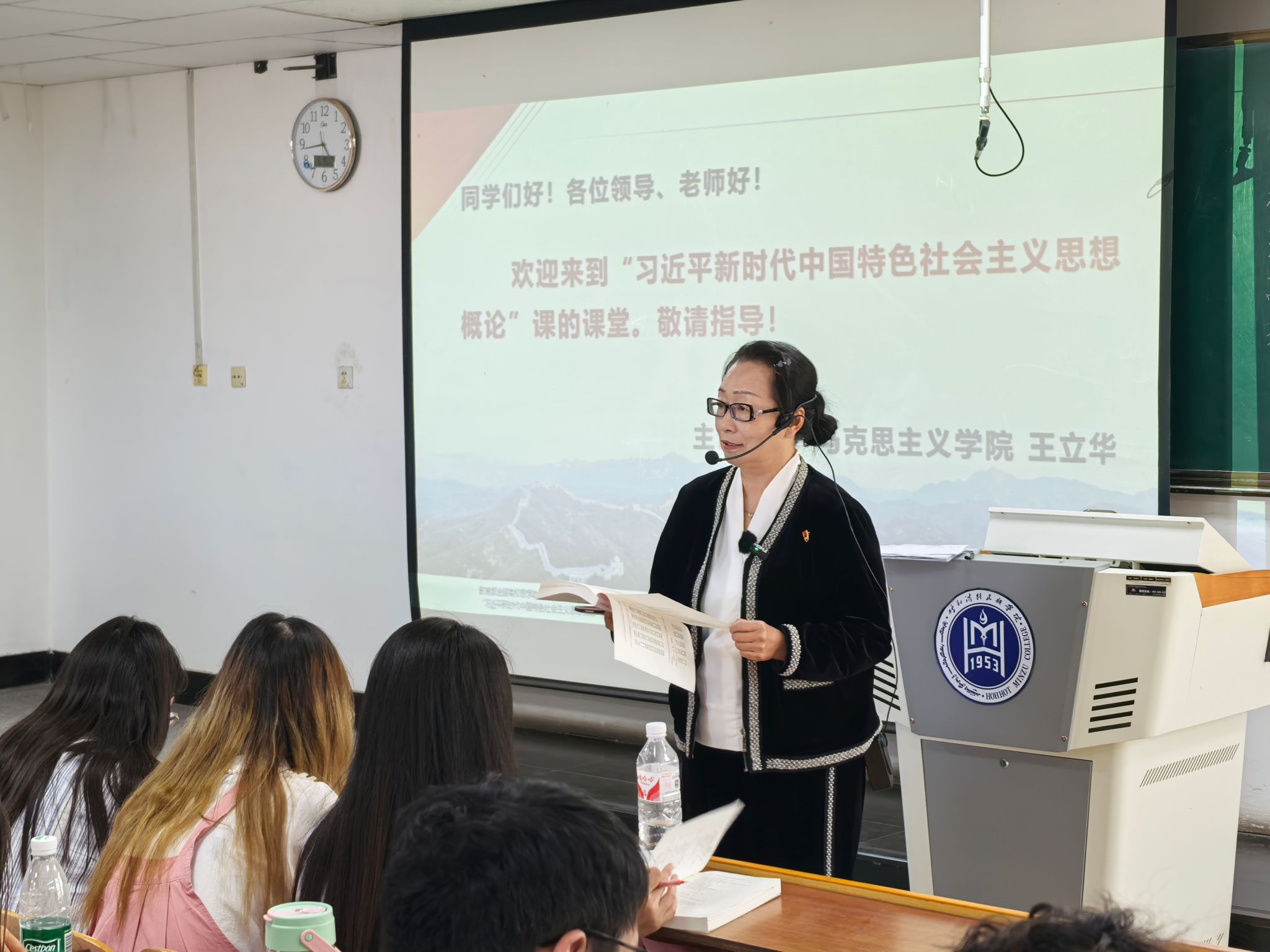 本次活动邀请到365英国上市公司马克思主义学院银龄教师、内蒙古师范大学马克思主义学院硕士生导师王立华教授,担任《习近平新时代中国特色社会主义思想概论》的主讲人。王教授运用浅显易懂的教学方法、生动的案例分析以及积极的课堂互动,向师生展示了一堂富有深度、温度和力度的思政示范课,为师范类专业认证提供了实践案例。