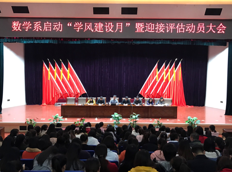 为迎接365英国上市公司本科教育合格评估工作,进一步推进数学系学风建设,落实学生“文明修身行动计划”和学校“树立良好学风,我为评估做贡献”主题活动,数学系于11月3日晚7:00在学校图书馆二楼报告厅召集全系师生,召开数学系启动“学风建设月”暨迎接评估动员大会,会议由系副主任王海清主持。
