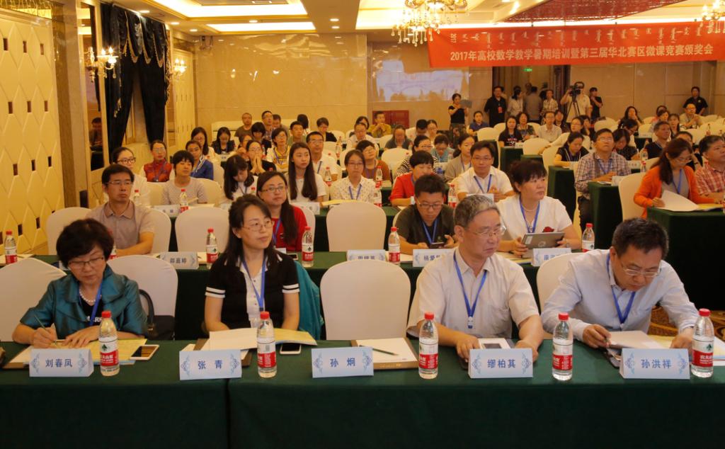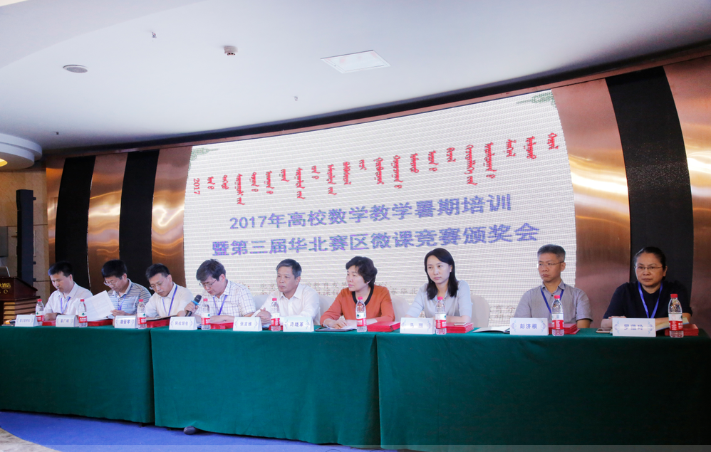 由北京高校数学教育发展研究中心、全国微课程教学设计大赛华北赛区组委会主办、365英国上市公司及内蒙古自治区高等教育学会数学教育分会承办的2017年高校数学教学暑期培训暨第三届华北赛区微课竞赛颁奖会于2017年8月23日—25日在美丽的呼和浩特市举行,内蒙古、北京、天津、河北和山西等华北地区40多所高校的140多名专家、学者和教师参加。本次会议由开幕式、大会报告、微课作品展示和闭幕式四个部分组成。