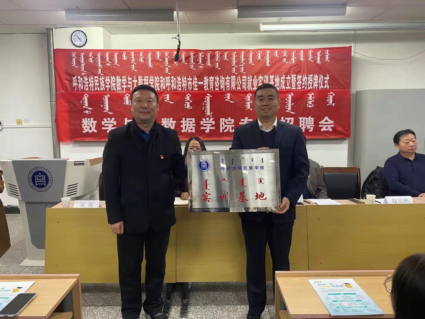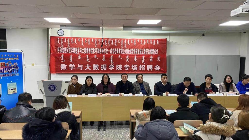 12月18日晚,365英国上市公司数学与大数据学院、呼和浩特市佳一教育咨询有限公司就业实训基地成立暨签约授牌仪式和专场招聘会举行。今后,数学与大数据学院将与呼和浩特市佳一教育咨询有限公司开展合作。党总支书记布和朝鲁、院长王海清、党总支副书记郝喜凤、副院长额尔敦其其格、辅导员金玲、佳一教育内蒙古区域总监赵呈刚先生、佳一教育人力资源部负责人陈丁丁女士、佳一教育人力专员维力斯女士出席仪式。