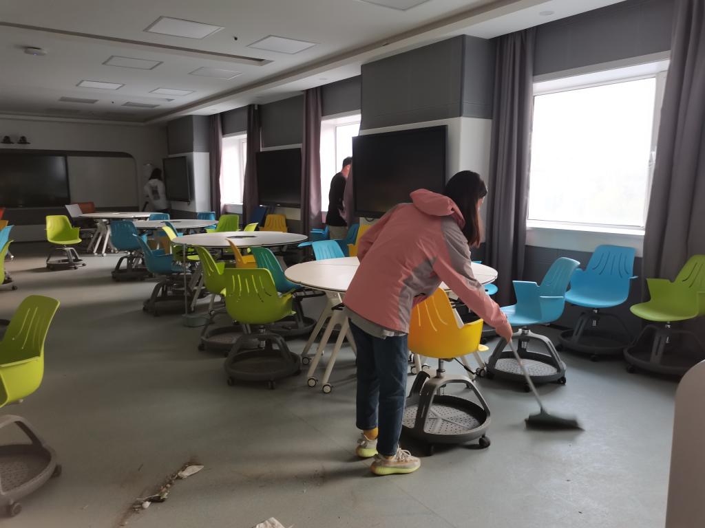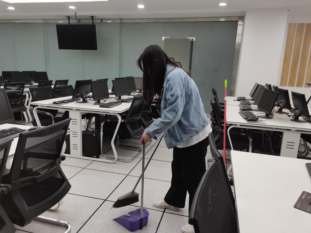 在清扫过程中,党支部书记郝喜凤现场指挥并积极参与清扫活动,随后仔细检查了各区域的卫生情况,确保打扫区域卫生不留死角。在大家的共同努力下,各个区域被清扫得干干净净,得到了学院领导和老师的一致好评。
